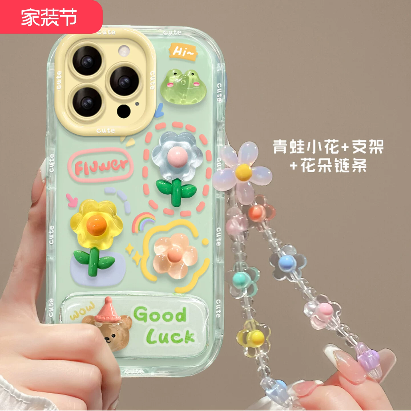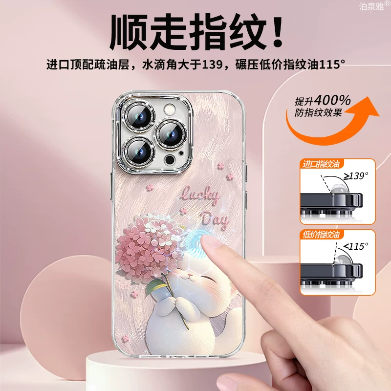 自带镜头膜【闪粉镜羽纱】绿帽好奇兔⭐挂绳
