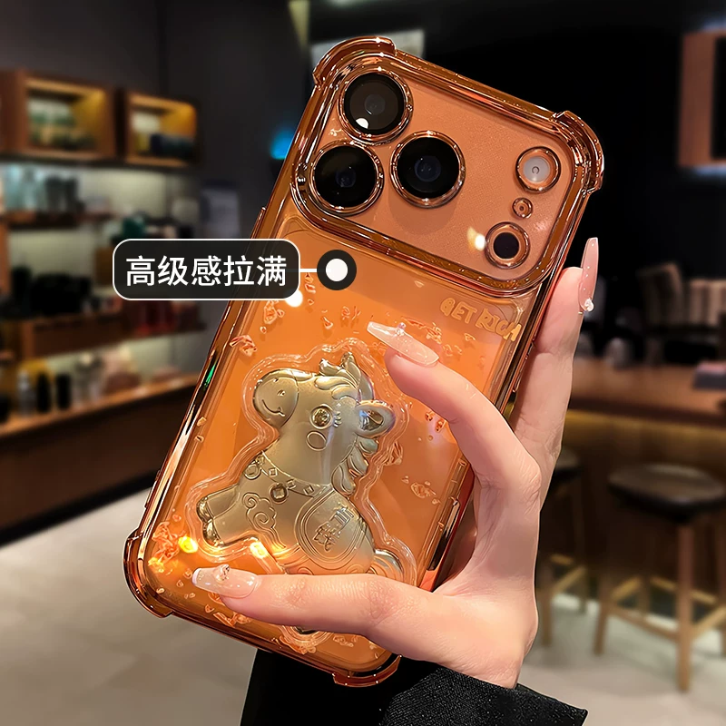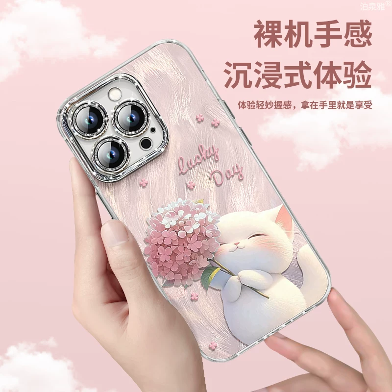 泊泉雅适用iphone16promax手机壳新款闪粉羽纱可爱小猫苹果17/13pro防摔硅胶ip14全包ins高级12/11男女15pro