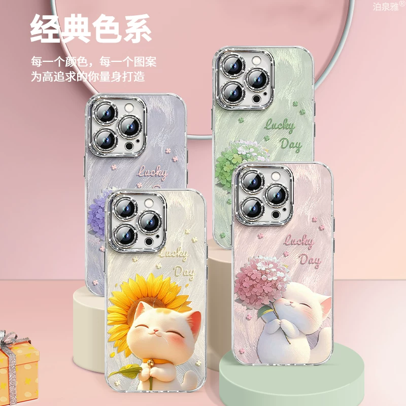 自带镜头膜【闪粉镜羽纱】葵花猫咪-古董白⭐挂绳